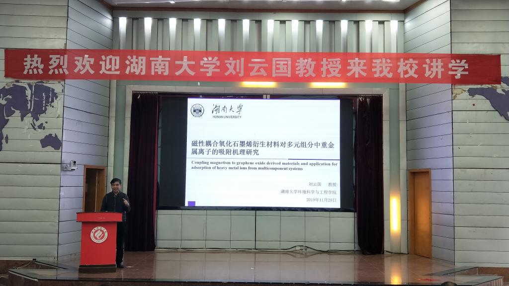 为营造良好的校园学术氛围,加强团队建设,促进学术交流,11月20日下午四点二十,公司特邀湖南大学环境科学与工程公司刘云国教授在西校区学术报告厅做了题为“环境科学与工程研究思路与方法探讨”的学术报告。报告会由太阳成集团tyc234cc经理曹丽敏主持,彭晖书记,易诚、杨海副经理,黄斌艳、罗远来老师及师生代表约200余人聆听了本次讲座。
