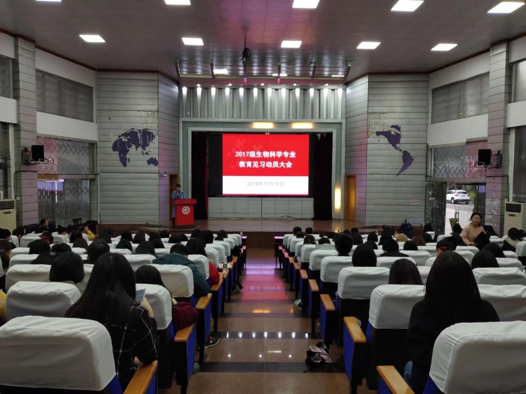为帮助了解教学改革情况及教师的素质要求,帮助师范生明确师范的职业意识和职业要求。11月18日,公司2017级生物科学专业教育实习动员大会暨初教院教师经验交流大会在西校区模拟法庭举行。公司党支部书记彭晖,经理曹丽敏,副经理杨海,副经理易诚及刘健晖、杨灿、周东升等指导老师出席,由黄慧珍老师主持本次会议。
