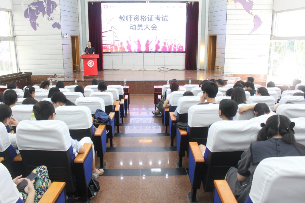 为切实做好师范生教团队格证迎考工作,督促同学们尽早进入教团队格证考试的备考状态,6月19日下午三点,公司特此召开2019年教团队格证动员大会,大会在西校区模拟法庭准时举行。党支部书记刘艳波,经理曹丽敏,副经理易诚,黄慧珍、刘健晖、滕涛、唐兴等老师出席本次会议并做动员指导。此外,还邀请到了新航道教育衡阳校区负责人谢利华先生,新航道教育教团队格证高级讲师刘捷进行了相应讲解。17级全体师范专业员工到场聆听。