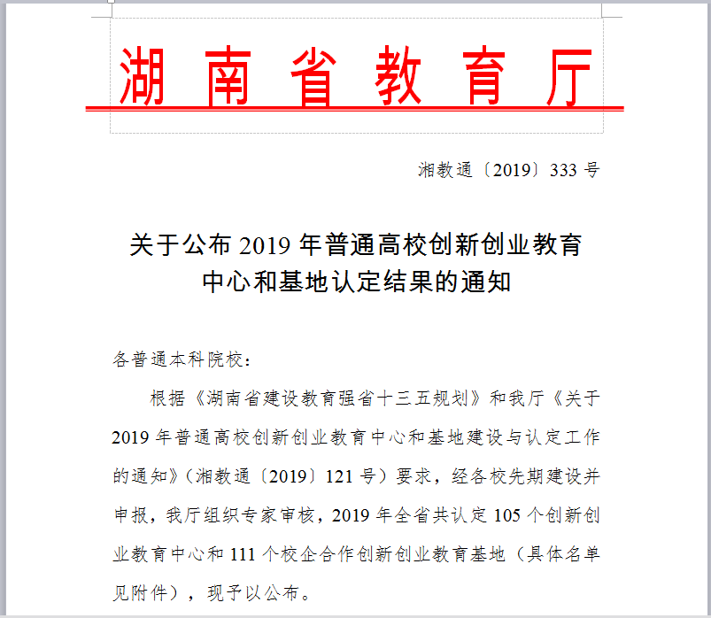 喜讯:经公司积极组织申报,湖南省教育厅组织专家认真评审,2019年公司新增3个省级创新创业教育中心和3个省级校企合作创新创业教育基地:其中曹丽敏经理负责的《太阳成集团tyc234cc生物技术校企合作创新创业教育基地》被湖南省教育厅认定为省级校企合作创新创业教育基地,这是公司省级平台项目的首次突破,也祝愿公司师生勠力同心,公司事业蒸蒸日上!