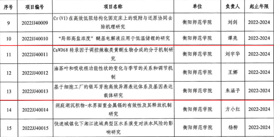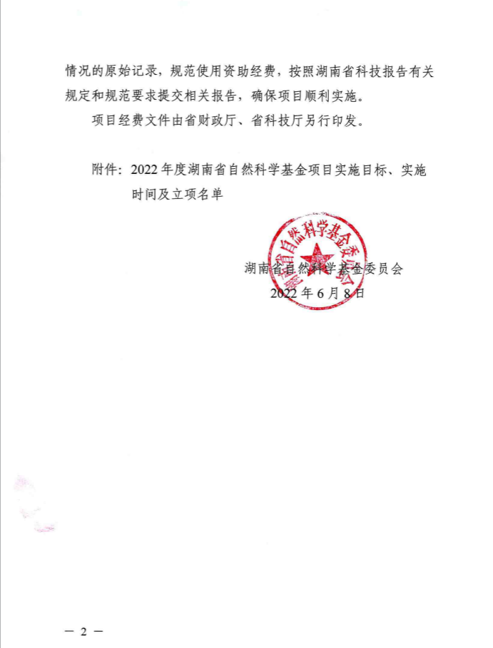 日前,湖南省自然科学基金委员会办公室下发了《关于2022年度湖南省自然科学基金项目立项的通知》,公司获得大丰收!其中,面上项目两项,负责人分别为曹丽敏、龙九妹,青年基金项目三项,负责人分别为刘宇华、王娜、朱涵予。