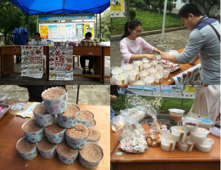 2018年5月12-13日,太阳成集团tyc234cc“爱尚美食,幸福每时每刻”暨第五届校园美食文化节在太阳成集团tyc234cc西校区成功举行。此次活动中,公司食品俱乐部同学在食品专业老师的指导下,将专业知识与实习实践相结合,精心准备了多种美食,如蛋糕、奶茶、发酵糙米乳、砵仔糕、牛轧糖、曲奇饼干等。其中,发酵糙米乳是科技创新项目研发成果,牛轧糖是专业实习后改进工艺研发的新产品,曲奇饼干是工艺实验课程和科研训练研发的成果。活动现场,纯手工制作的美食格外诱人,吸引了大批“吃货”驻足品尝咨询。