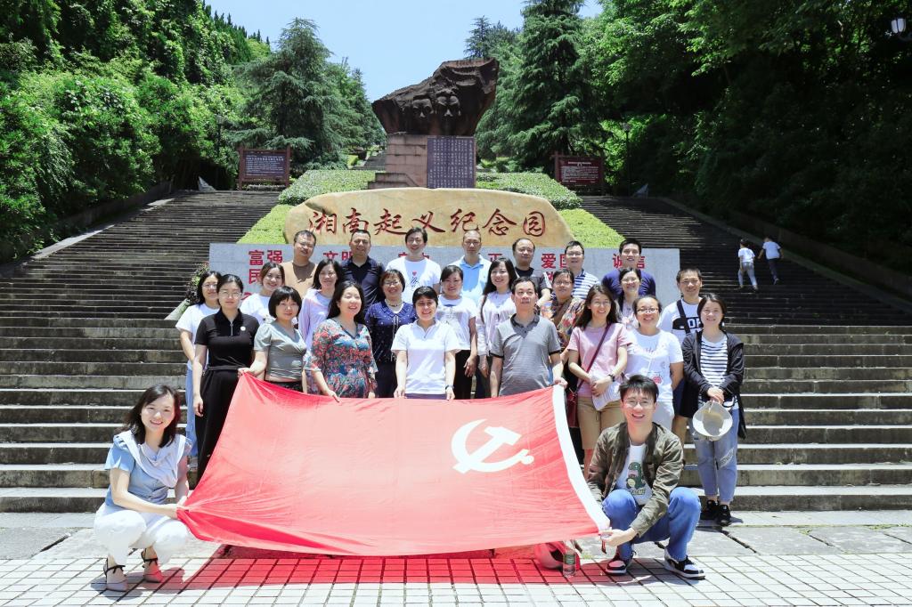 活动伊始,党员同志来到了湘南起义纪念塔。纪念塔位于郴州市烈士公园内,该公园陈设再现了当年湖南农民打土豪、分田地的场景,见证了党建立红色政权、革命风暴席卷湘南的壮阔情景。全体教工党员瞻仰回望了当年的纪念事件、深刻领悟了红色革命精神。