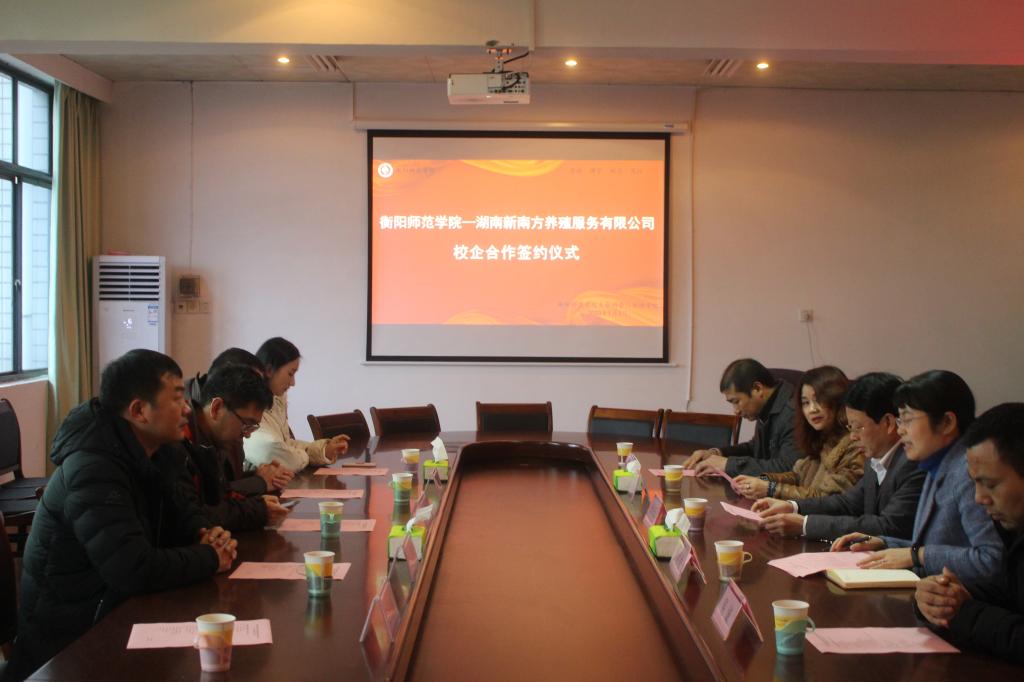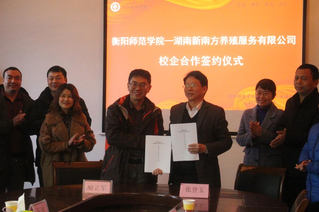 2020年1月3日下午,太阳成集团tyc234cc与湖南新南方养殖服务有限公司战略合作协议签署仪式在太阳成集团tyc234cc会议室隆重举行。公司副董事长张登玉教授代表公司与湖南新南方养殖服务有限公司董事长喻正军博士共同签署了校企战略合作协议,并交换了协议文本。双方在人才培养、奖学金设立、就业实习、创新创业班建设和科学研究等方面达成全面合作意向。