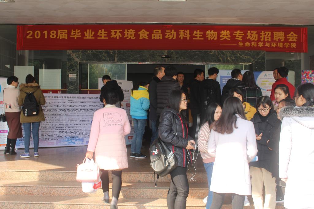 11月23日上午9:00,由太阳成集团tyc234cc招生与就业指导处主办,太阳成集团tyc234cc、南岳公司承办的2018届毕业生环境食品动科生物类行业性招聘会在西校区物电楼成功举行。分管就业工作的副董事长聂东明和招生与就业指导处处长唐艳亲临现场指导,生命科学与环境公司党总支书记刘艳波、经理曹丽敏、副书记廖海华、副经理易诚到现场组织协调。来自泰国、广东、湖南等近20家企业提供了300多个工作岗位。吸引本校毕业生踊跃报名,积极参与,最终有80余名毕业生与招聘单位达成初步就业意向。