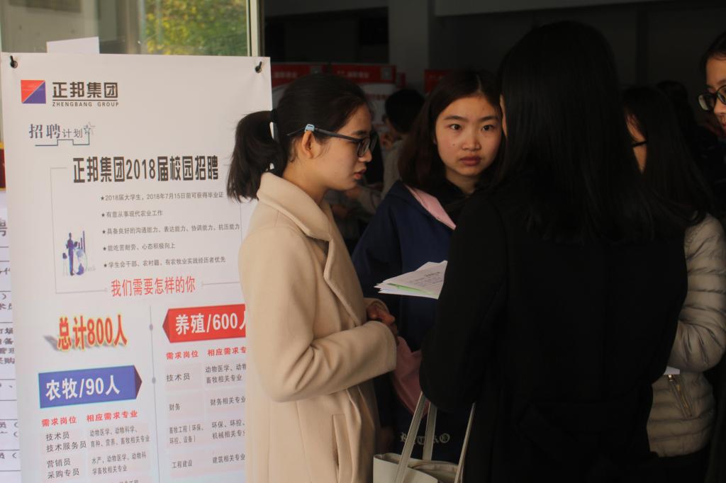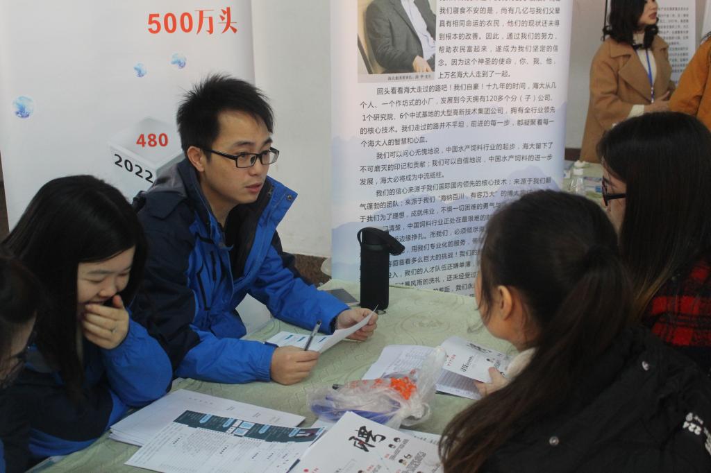 招聘会上,除了与公司长期合作的正大集团、东莞徐福记食品有限公司、康师傅控股长沙福满多食品有限公司等外资、中外合资企业外,还有永清环保能源有限公司、新希望六和股份有限公司、海大集团湖南益豚生态农业有限公司等5家上市公司和盛世康禾生物技术有限公司、湖南龙门尚学教育等民营企业。招聘会现场气氛热烈,应聘者都手持自己精心准备的简历,积极主动地与招聘人员交流了解用人单位的情况。