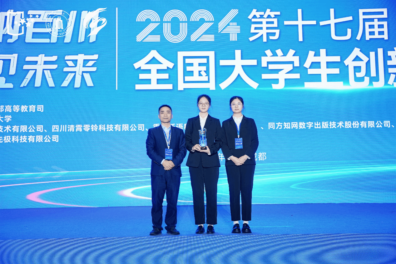 团队核心成员唐艺彤(右四)上台领奖