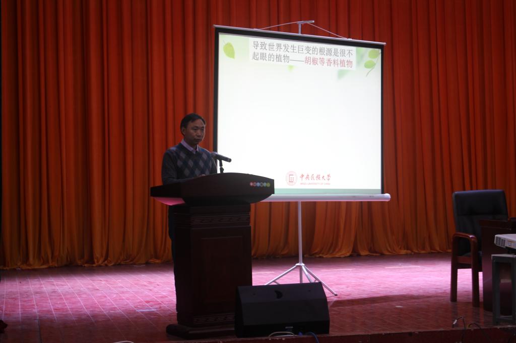 2016年11月10日早上九点,中央民族大学博士生导师龙春林教授莅临太阳成集团tyc234cc讲学,作了题为《植物改变世界》的学术报告。出席报告会的有经理曹丽敏、党总支书记刘艳波以及公司的各位教师。2013-2015级生物科学专业全体员工到场聆听。