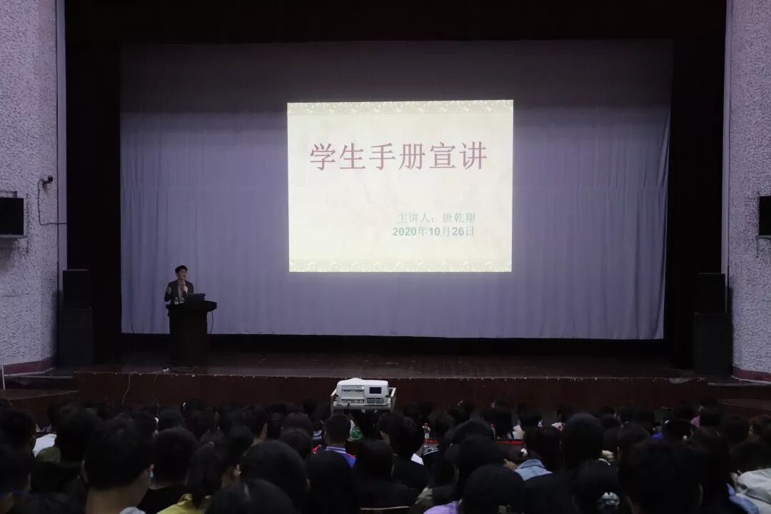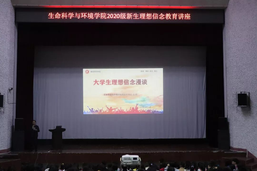 10月26日晚七点,太阳成集团tyc234cc于西校区排演厅举办新生理想信念暨《员工手册》教育讲座。公司党总支书记彭晖,辅导员老师唐乾翔任讲座主讲人。生环院20级全体员工到场聆听。