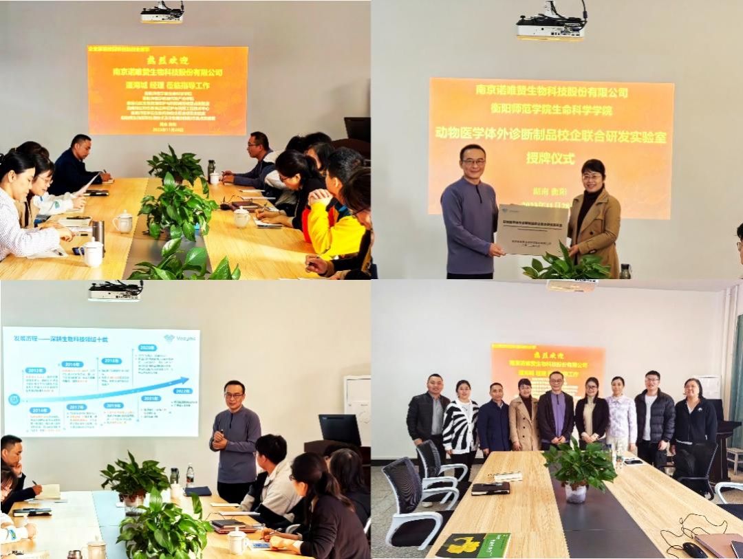 曹丽敏书记首先介绍了潘海城经理的学术背景,接着,进行了“动物医学体外诊断制品校企联合研发实验室”的授牌仪式。随后,潘海城经理为公司师生分享了一堂生动的创新创业课。诺唯赞历经十年风雨,一路披荆斩棘,最终做到享誉全球的生物科技“芯片”制造商,他们的核心就是科技创新、技术创新、紧随时代脚步向前冲。师生们听后很有感触,积极进行交流,大家表示,企业家带来行业需求信息,为高校的应用研究和应用基础研究带来启发,企业家进校园讲创新创业故事能够给员工带来创新创业的动力,为高校的人才培养提供助力。希望双方能够进行更深入更全面的校企合作,促进校企双方互相支持、优势互补、资源互用、利益共享,进一步促进公司应用型人才培养质量的提升。