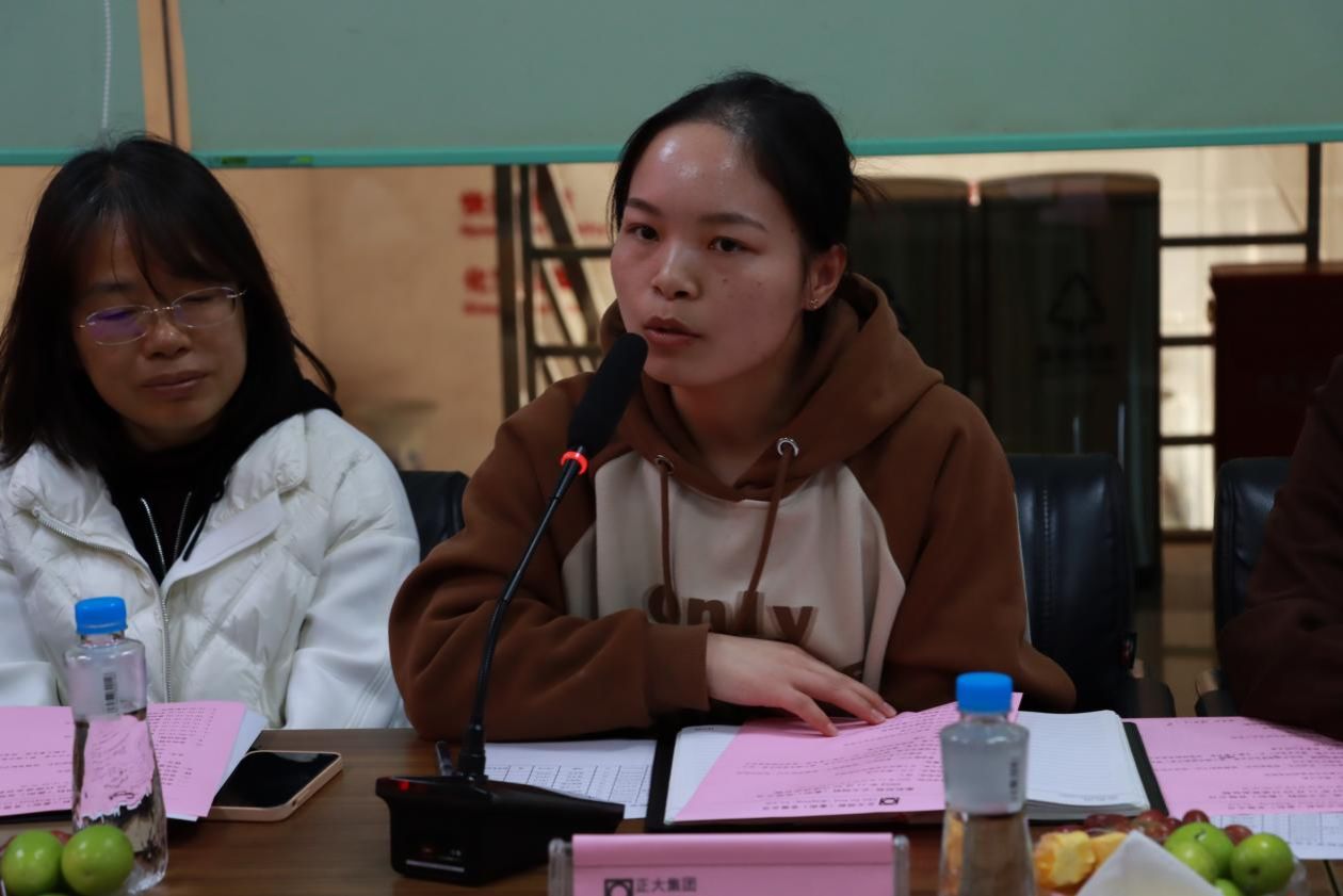 员工分享环节,公司行政内勤谢玲以及销售中心内勤陈雯表示,毕业至今,在公司得到了很大的成长,正大的工作环境温馨工作氛围好,也希望老师们能够多多推荐优秀的学弟学妹加入正大衡阳这个大家庭。