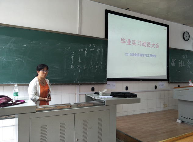 为保障实习工作的顺利开展,2015级食品科学与工程专业毕业实习动员大会于2018年7月13日上午在西外语楼102教室顺利召开,易诚副经理、宾冬梅教授、陈晓华博士和相关专业老师参加会议。
