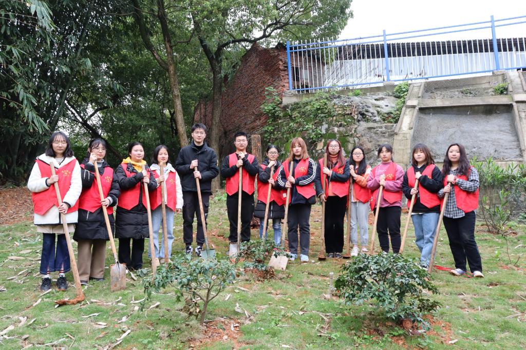 阳春三月,繁花盛开,万物复苏,生机盎然,一年一度的植树节悄然而至。3月12日下午3点,响应校团委号召,生环公司护绿创绿社团和19级生科一班的同学们在后勤部宋老师和辅导员唐老师的带领下,于西校区开展了义务植树活动。