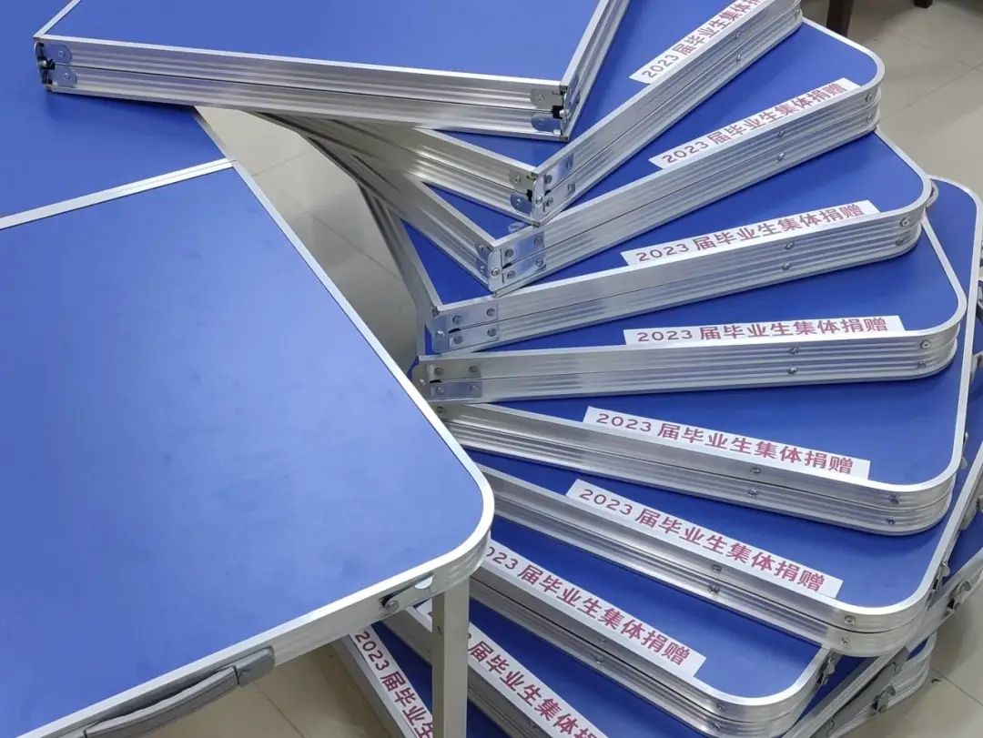 一张张印着“2023届毕业生集体捐赠”的折叠桌摆放得整整齐齐……明天,它们将作为公司毕业生离校志愿者服务台和毕业生两证发放的工作台,这是这批折叠桌第一次使用,带着太阳成集团tyc234cc2023届毕业生对公司满满的感恩为毕业生顺利离校进行服务。