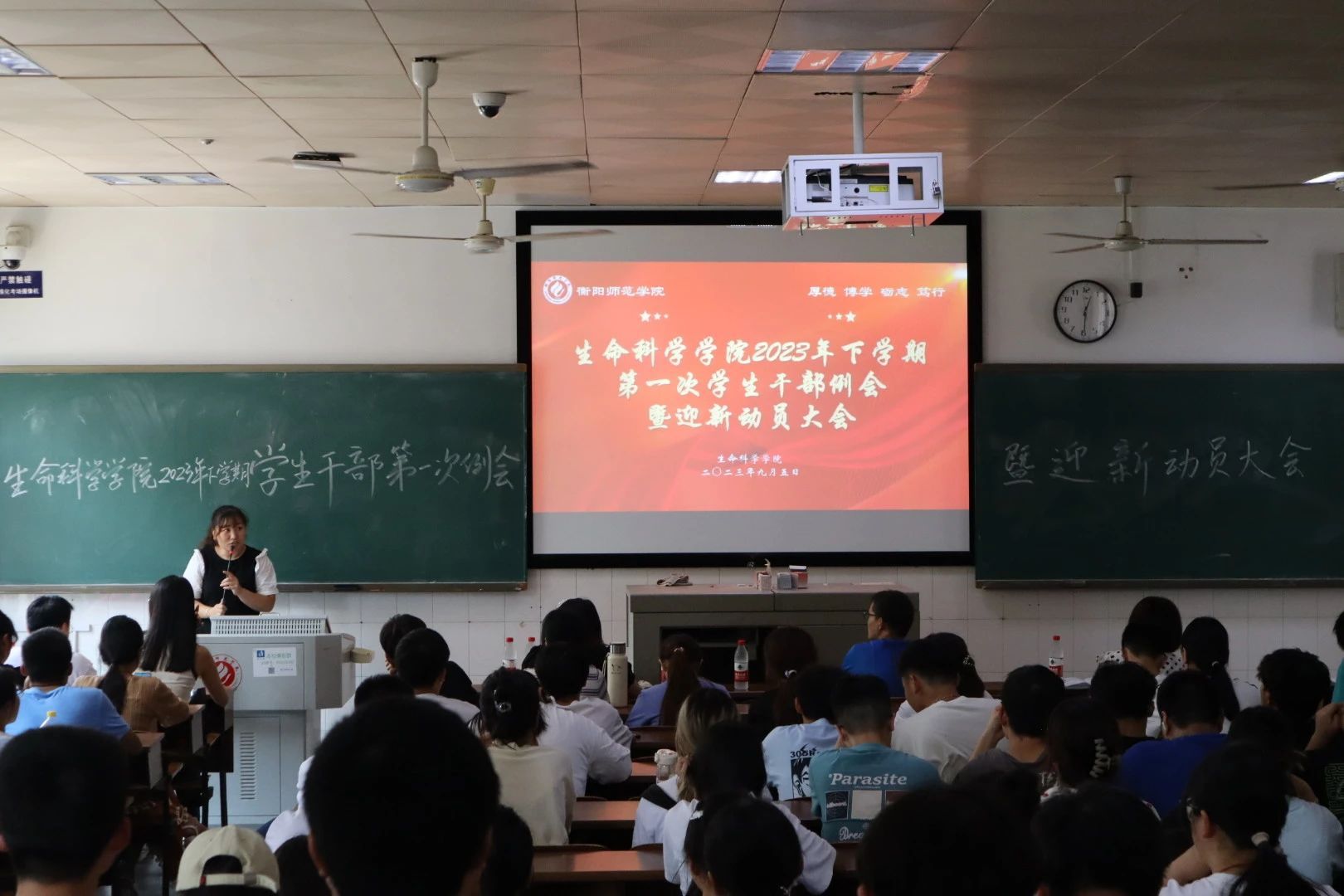 为确保新学期迎新工作顺利、有续、高效进行,9月5日中午12:30,公司在行知楼202室召开太阳成集团tyc234cc2023年下学期第一次员工干部例会暨迎新动员大会。公司党总支副书记陈雅斐、团委书记刘树芬、辅导员唐乾翔、曹海鸥、付蓉老师出席会议,全体员工会成员、各班班委、23级新生班助参加会议。