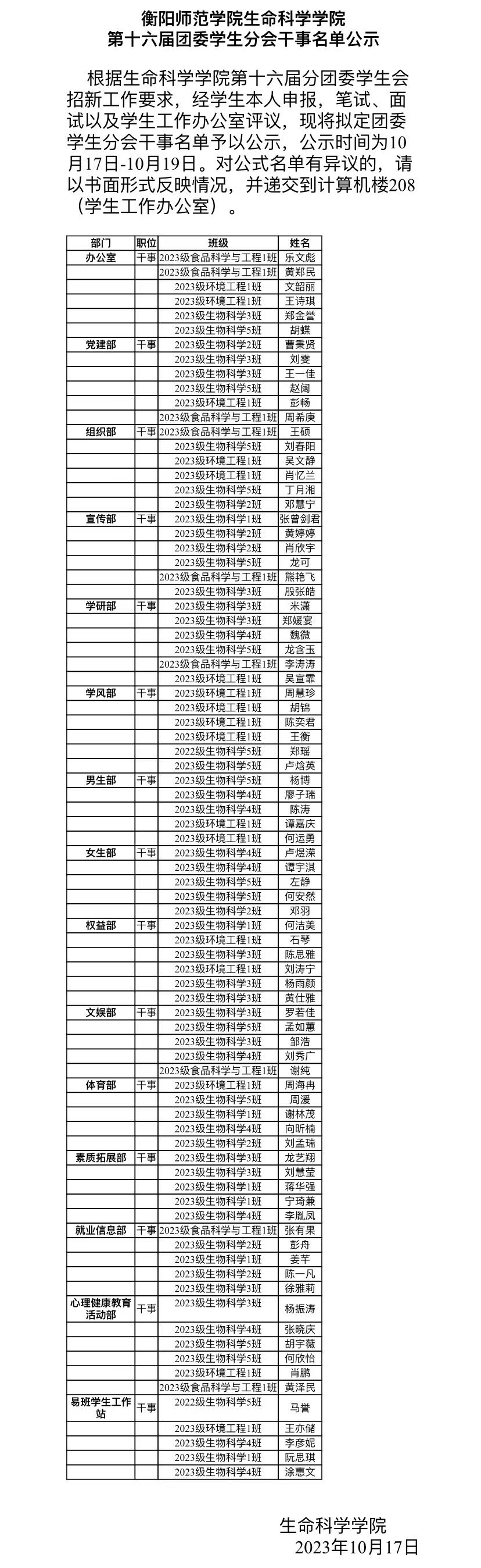 经个人竞演、公司选拔、团委讨论决定,招以下同学为第十六届团委员工分会干事,现将名单予以公示。