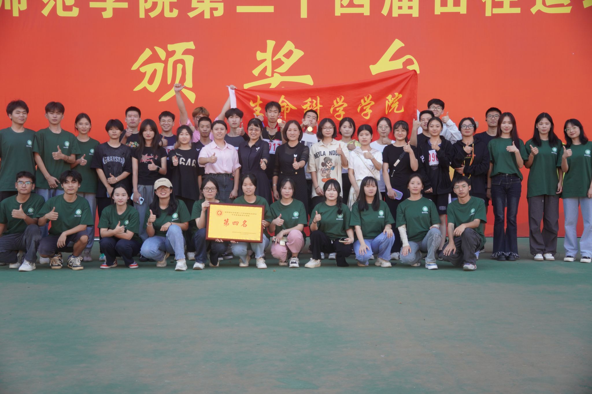 经过一天的激烈角逐,下午四时,运动会闭幕式暨颁奖典礼如期举行。公司员工代表怀着激动的心情上台领奖。此次运动会不仅展示了运动员优秀的个人体质和团队协作能力,更是充分展现了积极进取、团结一致的精神风貌。经过生科学子不懈的努力,公司荣获普通组男女团体奖第四名,这不仅加深了同学们之间的友谊,也激励着生科学子勇争一流。