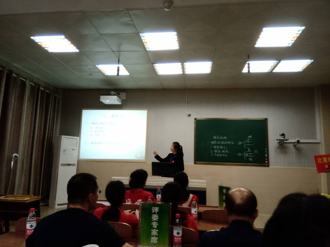 片段教学环节中16级尹亮需要进行教学的内容是“基因在生物体间的传递”。她侧重“以员工为中心”展开教学,首先请员工自主学习,然后就本节课重点,基因是具有遗传效应的DNA片段以及三者之间的关系请同学们小组合作探究。作为一名教师,临场反应能力是不可能缺少的一项素质能力,而16级杨慧菲则在这方面做得不错。在讲课三分钟后,电脑突然黑屏,PPT无法显示,但她沉着冷静,不慌不忙,拿出自画的两张结构图继续授课,丝毫不受影响,得到了评委们的认可。