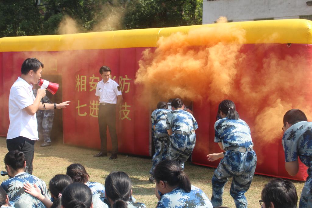 上午9:00,消防宣传公益人员到达操场,并准备好演练相关设备,同时有宣传人员进行安全知识讲解。宣传人员表示发生火灾时大部分人的意识薄弱与错误行为是人员伤亡重要原因。接着宣传人员列举了几种常见的情况,介绍了在面对不同情况下的不同方法,举出力所能及的有效措施。重点教学了在发生火灾后员工如何自救逃生,熟悉消防器材的使用和如何扑灭初起火灾。提出了同学们应该需要有一定的防范的意识以及住校时的注意事项。随后,新生自主体验在田径场浓烟中的逃生方法,同学们不慌不忙,以理智、迅速的行动完成了此次演练。
