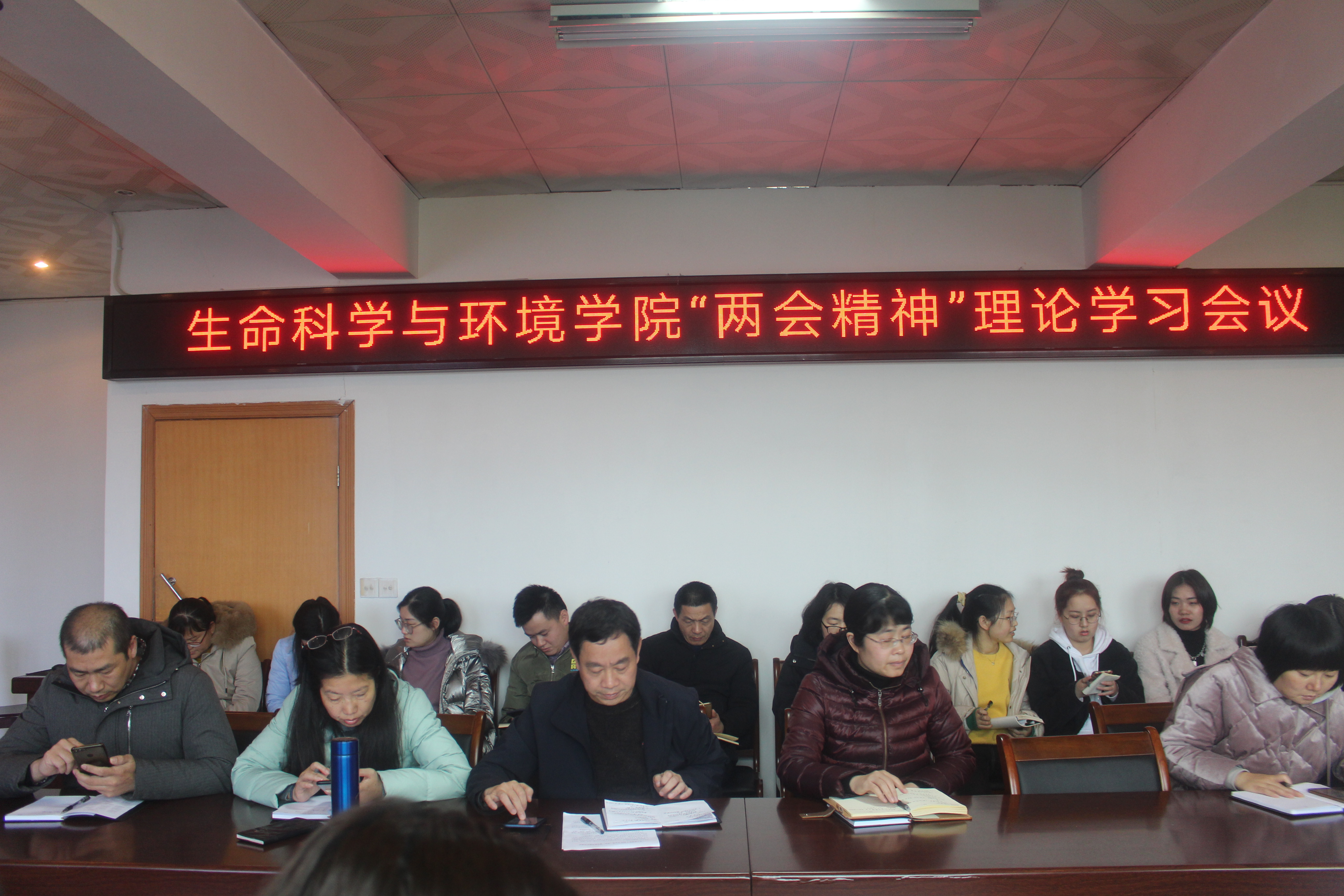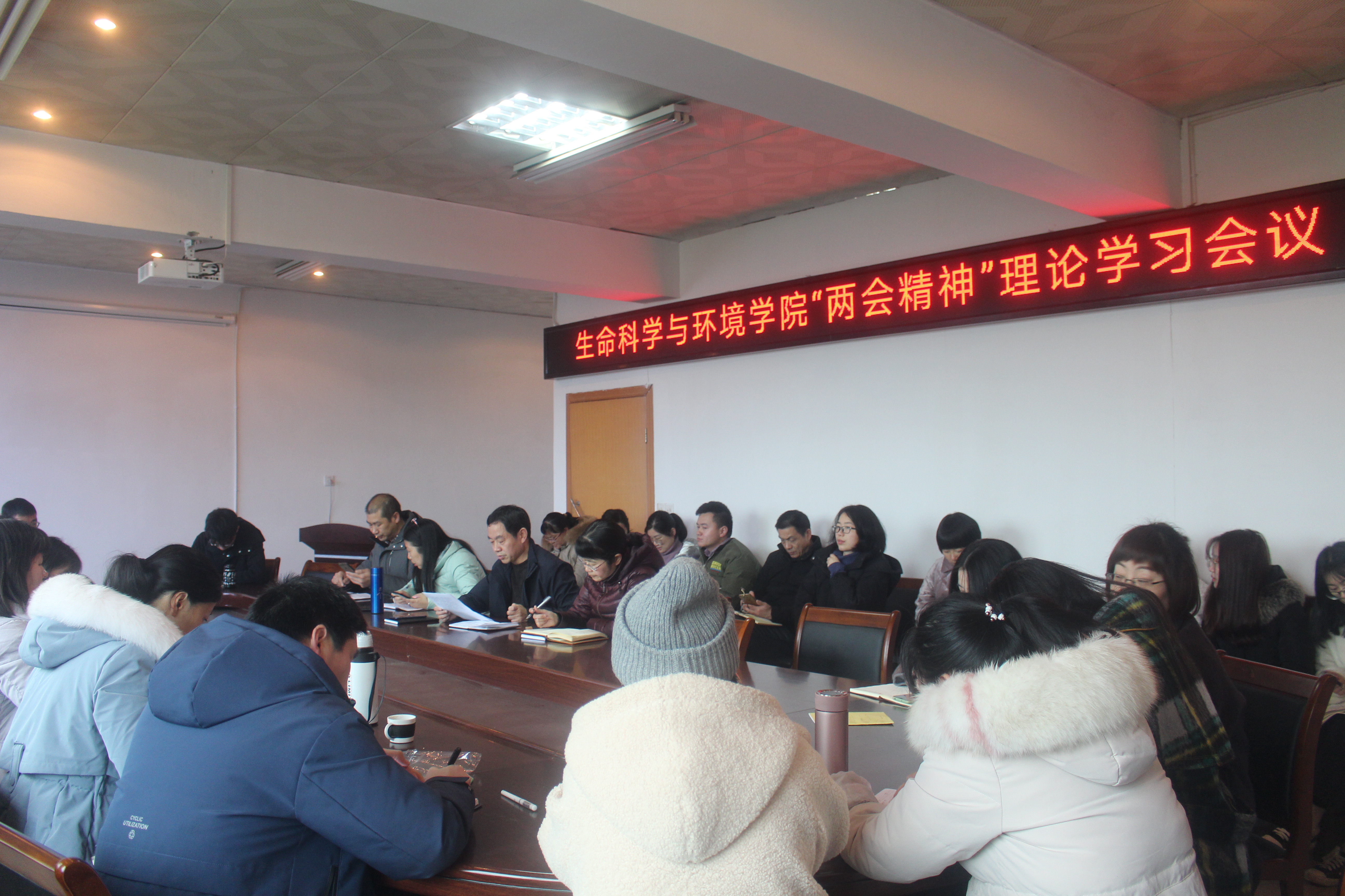 3月10日下午3时,太阳成集团tyc234cc于西校区千禧楼601会议室召开全国“两会”精神专题学习会。教工支部书记杨海担任主讲人,生命科学与环境公司党政领导、全体教职工、员工党员代表到场聆听。