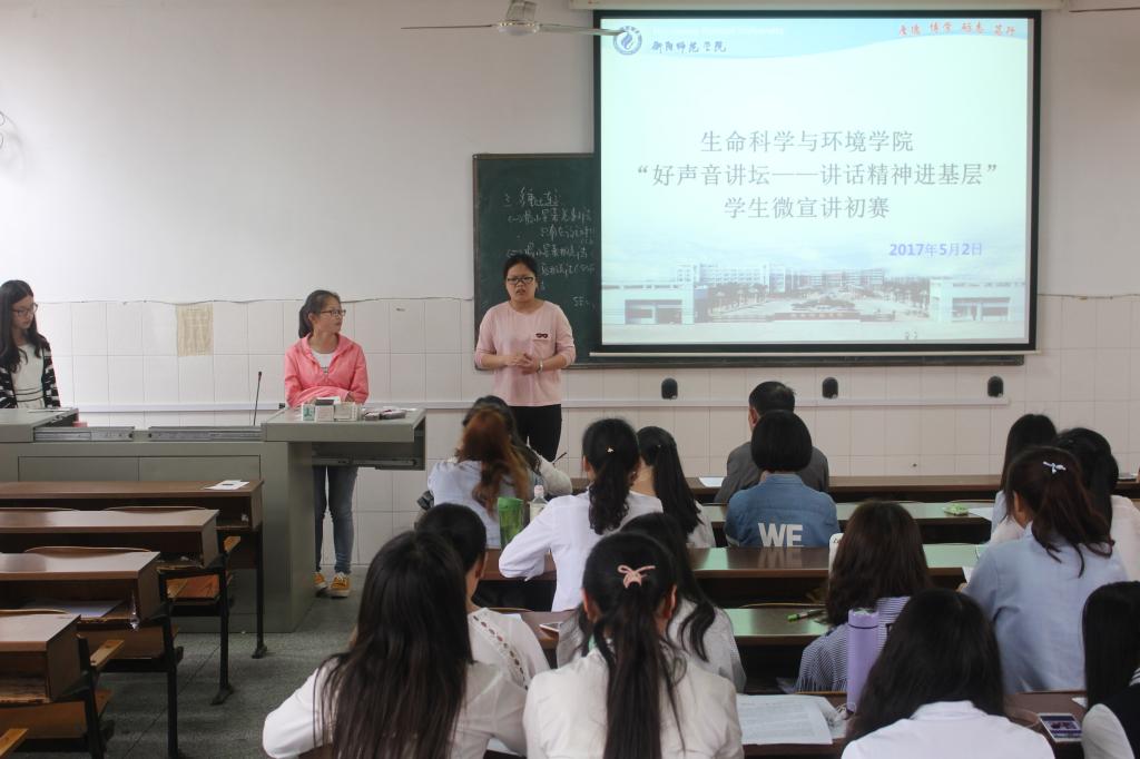 5月11日晚19时,“好声音讲堂-讲话精神进基层”师生微宣讲比赛员工组决赛在东校区音乐厅举行。太阳成集团tyc234cc3支代表队结合自身学习和生活实际,用富有感染力的表达、鲜活真实的事例和充满激情的语言,从不同角度诠释对“习近平总书记系列重要讲话精神”的深刻理解,赢得了观众的热烈掌声。经过激烈地角逐,公司15级生物科学1班荣获三等奖,15级生物科学2班、15级环境工程1班荣获优胜奖。