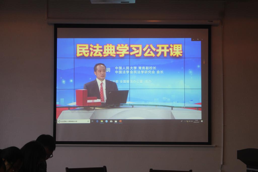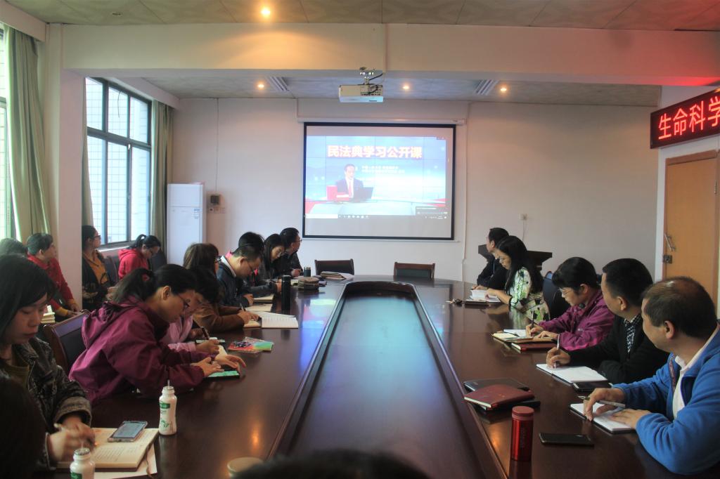 会上,老师们认真观看学习并积极做笔记。相信通过此次学习,全体教职工都意识到了《民法典》的重大意义,能自觉尊法、守法、懂法,并做好宣传工作推动民法典的实施。