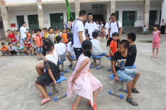 快乐的时光悄悄柔柔流入心房,从教室流出操场,几个志愿者带着“小天使们”进行文体活动,和他们玩起了抢凳子等小游戏,他们便玩开了,旁边观看的小朋友也会主动帮助我们当起小裁判,孩子们围着几张凳子跑动起来,如一串跳动的音符,灿烂地飘在这个季节,真实的,是他们的笑颜!