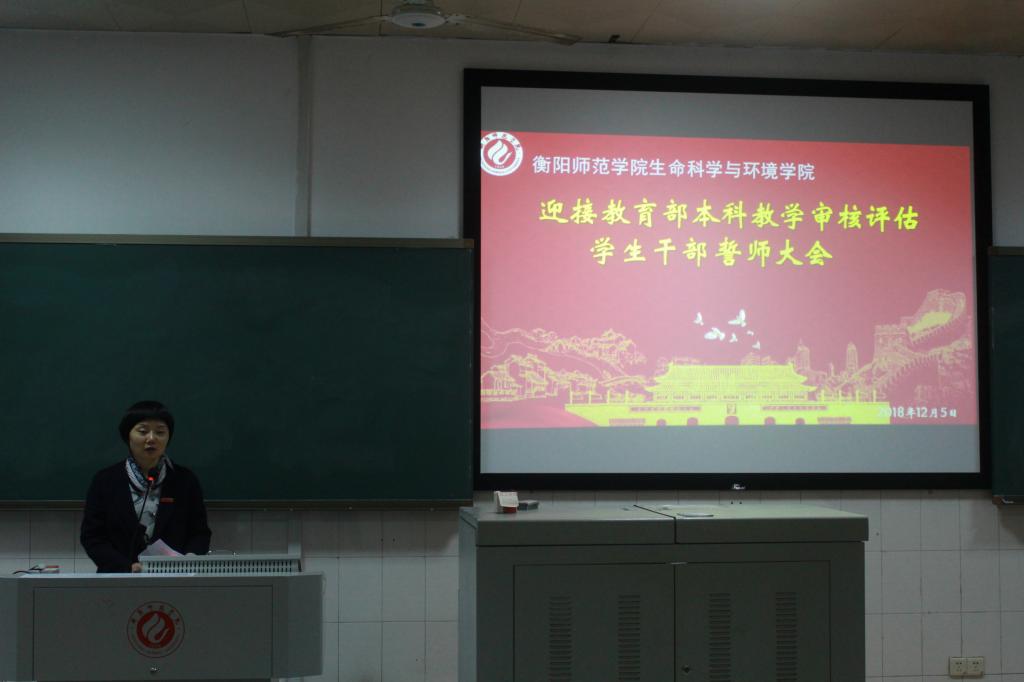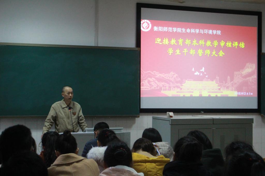 首先,由刘艳波书记为员工干部迎接评估工作布局作出总指示。他指出审核评估是与我们每个人息息相关,紧密相连的工作,在12月10日-13日我们将迎来正式的为期四天的审核评估,到了“争光争气争成绩”的紧要关头,做好这项工作是生环学子义不容辞的责任,人人应有参与评估的紧迫感与责任感。尤其是在座的员工干部——生环院员工的脊梁,理应起带头模范作用,起表率作用,传播积极向上的精神,带领同学们在评估专家面前,展现出衡师人积极的精神风貌。