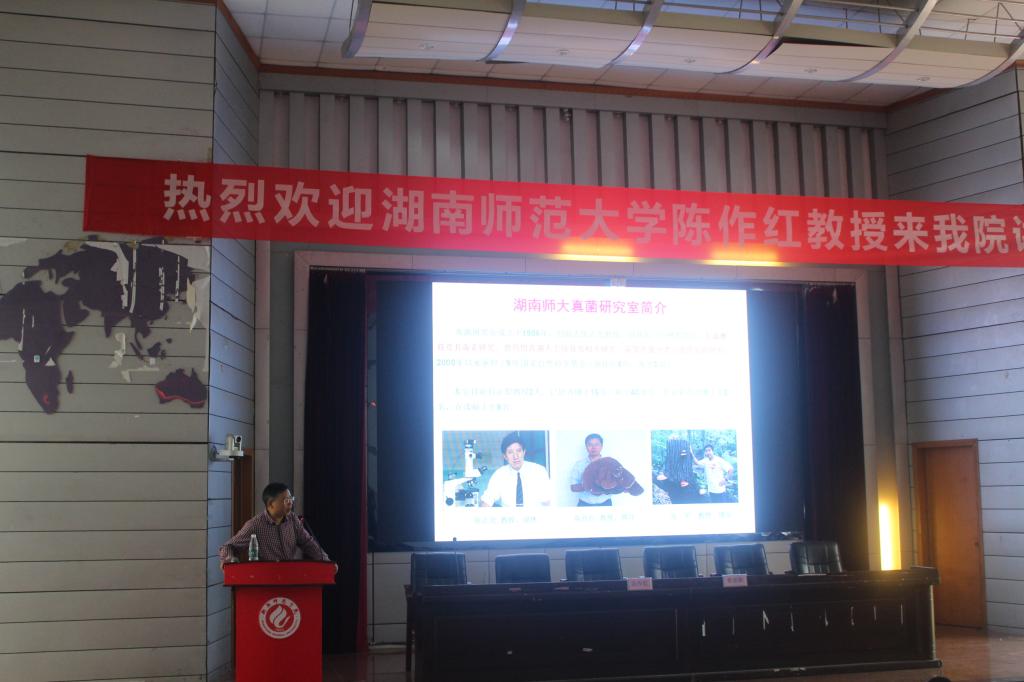 为营造良好的校园学术氛围,加强团队建设,促进学术交流,10月25日下午,公司特邀湖南师范老员工命科学公司陈作红教授在西校区学术报告厅做了题为“我国野生蘑菇中毒及其毒素研究”的学术报告。报告会由太阳成集团tyc234cc经理曹丽敏主持,刘艳波书记、廖海华副书记、杨海副经理及师生代表200余人聆听了本次讲座。